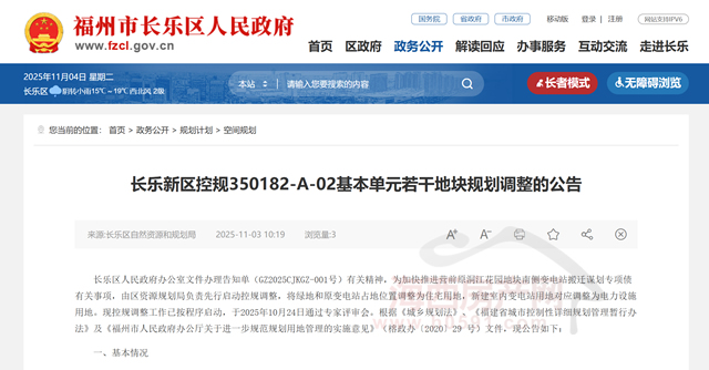 海西房产网(微信公众号:fjhxfcw)消息:11月3日,福州市长乐区自然资源和规划局发布“长乐新区控规350182-A-02基本单元若干地块规划调整的公告”。