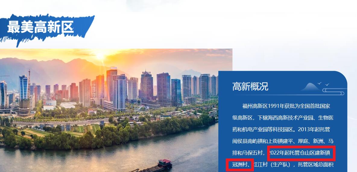 其中,建新镇冠洲村在此之前已托管给福州高新区。随着福州高新区剥离社会事务职能,加之此次仓山区领导已实地走访,这也意味着冠洲村或已结束高新区的托管,重新划归仓山区管理了。