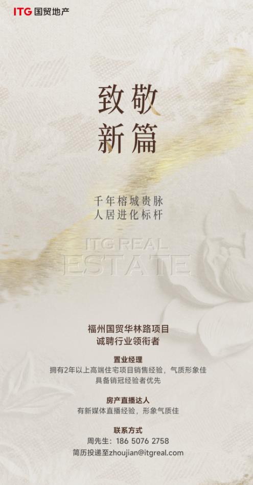 福州国贸华林路项目诚聘置业经理、房产直播达人