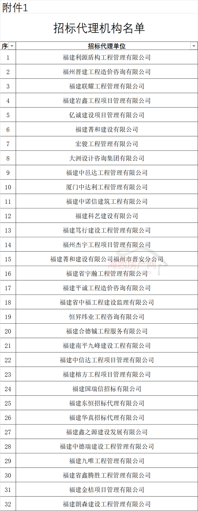 根据《福建省房屋建筑和市政基础设施工程招标代理机构管理办法》文件要求,现对福建利源盾构工程管理有限公司等32家违规收费的招标代理机构予以曝光。各招标人自主选择招标代理机构时,应做好择优比选。