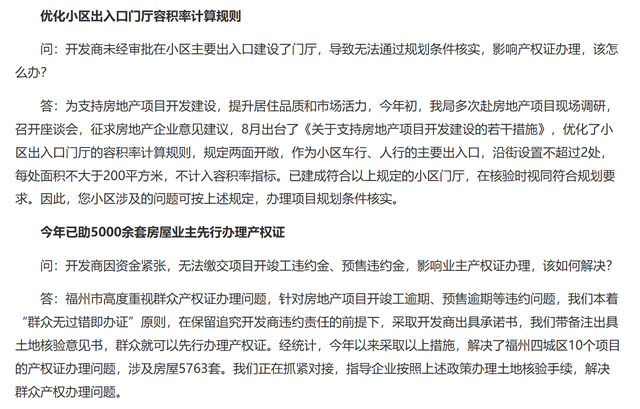 蔡文表示,福州市高度重视群众产权证办理问题,针对房地产项目开竣工逾期、预售逾期等违约问题,我们本着“群众无过错即办证”原则,在保留追究开发商违约责任的前提下,采取开发商出具承诺书,我们带备注出具土地核验意见书,群众就可以先行办理产权证。