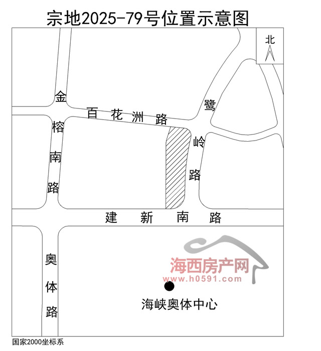 福州宗地2025-79号位于仓山区百花洲路南侧、鹭岭路西侧出让地块,土地用途及年限为商业(含酒店)、商务用地40年。