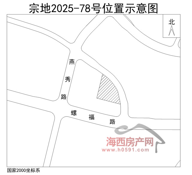 福州宗地2025-78号位于仓山区螺福路与燕秀路交叉口东北侧出让地块,土地用途及年限为住宅(保障性租赁住房)用地70年。