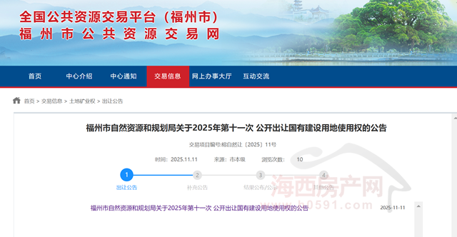 于是,11月11日福州市自然资源和规划局发布“关于2025年第十一次 公开出让国有建设用地使用权的公告”。
