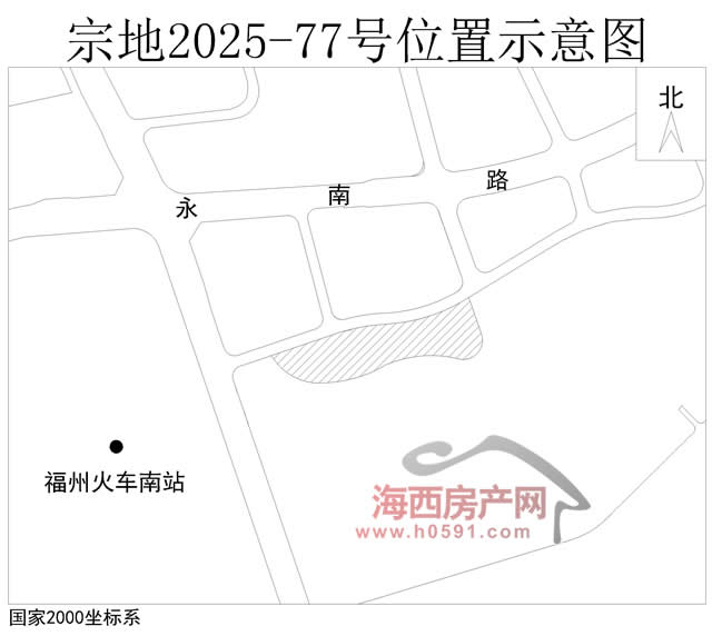 福州宗地2025-77号位于仓山区南路南侧、福州连接线西侧,南湖片区南侧出让地块四,土地用途及年限为住宅用地70年。