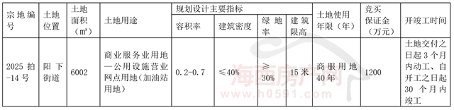 福清宗地2025拍-14号位于阳下街道,土地用途为商业服务业用地—公用设施营业网点用地(加油站用地)。