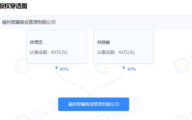 根据股权穿透图显示,该公司大股东为林德忠,持股60%;二股东为林晓峰,持股40%。