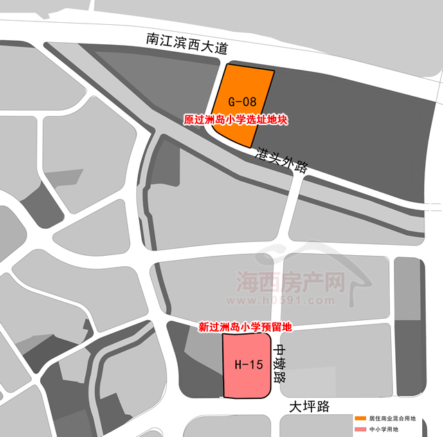 目前鉴于人口出生率不断下降,小学学位已呈下降趋势,经市里相关部门测算论证,过洲岛小学原用地周边的福州市朝阳小学、福州第十二中学小学部等学校目前学位可暂时满足片区需求;现经市里研究明确将过洲岛小学原规划预留教育用地转为商住综合用地,新过洲岛小学预留地调整至南侧大坪路旧厂房地块,办学规模保持不变。