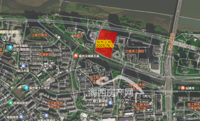 本次拍卖的9幅地块当中,包含福州宗地2025-76号,该地块位于仓山区南江滨西大道南侧、港头岛外路东侧出让地块,土地用途及年限为住宅用地70年、商业用地40年。
