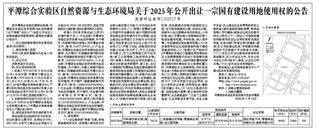 海西房产网(微信公众号:fjhxfcw)消息:11月15日,平潭综合实验区自然资源与生态环境局发布“关于2025年公开出让一宗国有建设用地使用权的公告(岚资环让告字〔2025〕7号)”。
