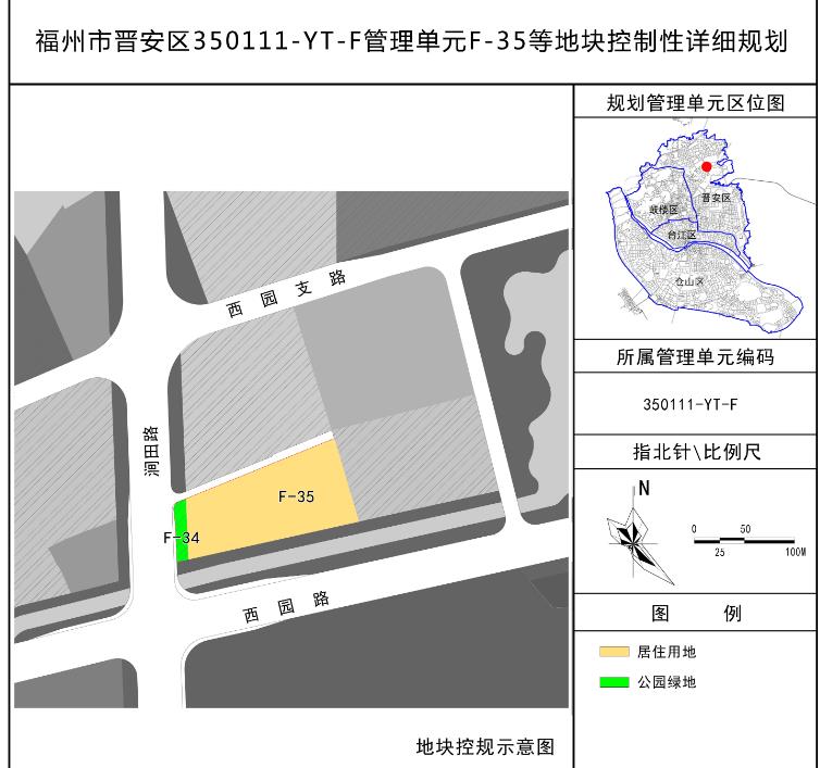 晋安区350111-YT-F管理单元F-35等地块位于涧田路东侧、西园路北侧。