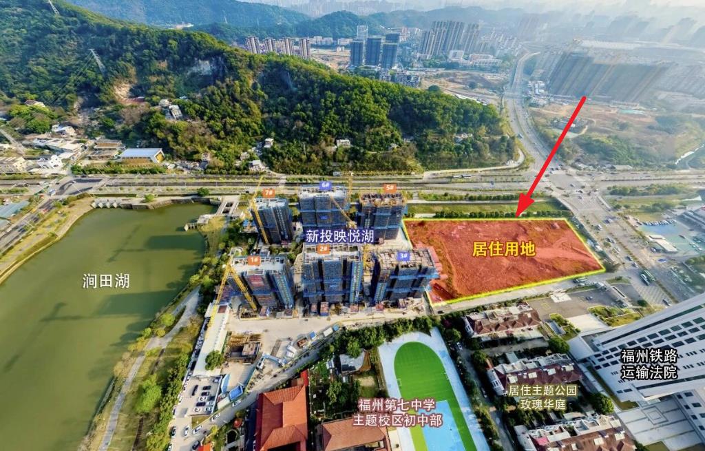 从位置图上可以看到,该地块周边有新盘新投映悦湖项目,福州七中主题校区初中部,居住主题公园。值得一提的是,项目距离人工湖涧田湖也仅有相距不远。这也意味着,未来福州土拍市场,将再添一幅优质的湖景住宅用地。