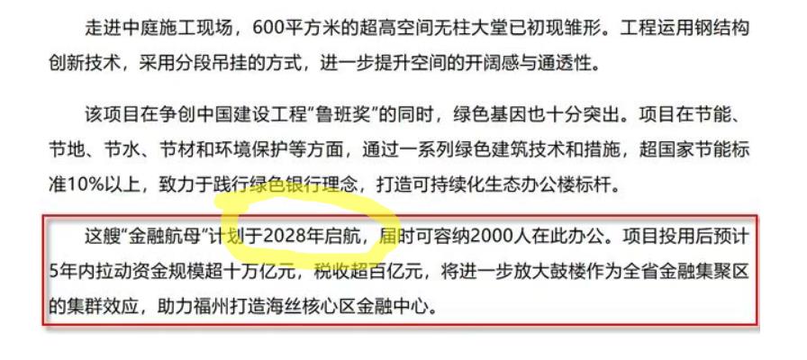 “家住鼓楼”公众号在9月份的推文中透露,兴业银行(集团)福州营运中心这艘“金融航母”计划于2028年启航,届时可容纳2000人在此办公。