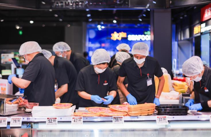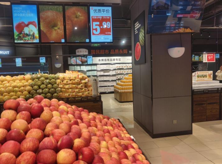 购物环境上,门店取消强制动线,拓宽过道,使卖场视野更通透,动线更流畅。引入3R产品区、海鲜厨房及特色加工档口,照明系统的全面更新,有效提高了商品的展示效果。