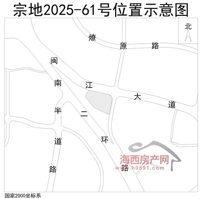 福州宗地2025-61号位于仓山区闽江大道与通江路交叉口西南侧出让地块,土地用途及年限为商服(商业、商务)用地40年。