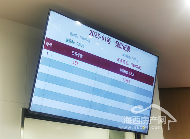 经过1轮竞价,156竞买人福州地铁置业有限公司以1.39亿竞得福州宗地2025-61号,楼面地价5316.93元/㎡。