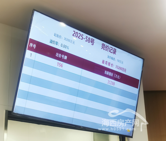 经过1轮竞价,156号竞买人福州地铁置业有限公司以3.52亿竞得福州宗地2025-58号,楼面地价10918.38元/㎡。