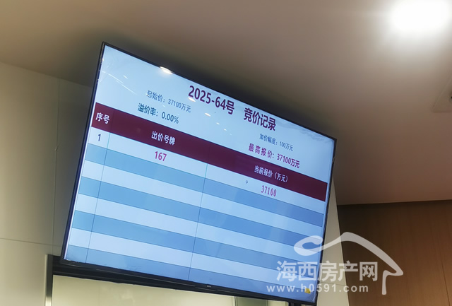 经过1轮竞价,167竞买人福建省榕圣建设发展有限公司以3.71亿竞得福州宗地2025-64号,楼面地价2338.76元/㎡。
