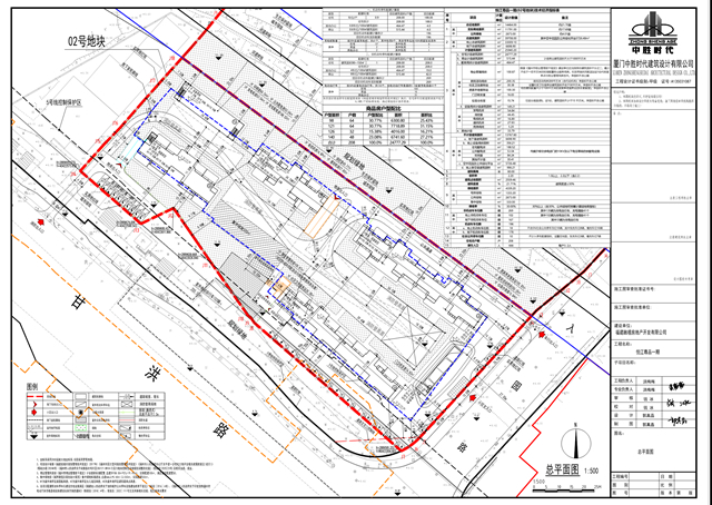 该项目总平面规划及建筑设计方案由厦门中胜时代建筑设计有限公司设计,主要经济技术指标为:总用地面积14464平方米,实用地面积11791平方米,容积率2.2,建筑密度21.71%,绿地率30%;总建筑面积39708.00平方米(其中地上建筑面积33009.10平方米,地下建筑面积6698.90平方米),计容建筑面积25940.20平方米,不计容建筑面积13767.80平方米,建筑占地面积2559.46平方米,机动车停车位196辆,非机动车停车位269辆。