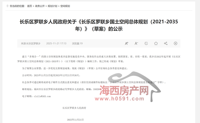 海西房产网(微信公众号:fjhxfcw)消息:11月21日,长乐区罗联乡人民政府发布“关于《长乐区罗联乡国土空间总体规划(2021-2035年)》(草案)的公示”。