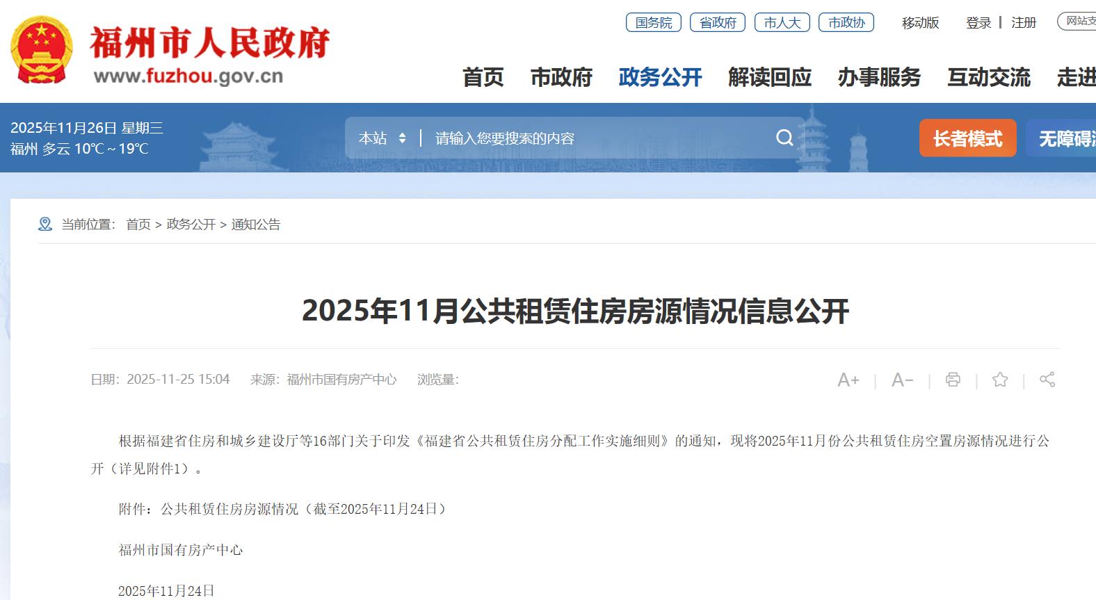 海西房产网(微信公众号:fjhxfcw)消息:2025年11月24日,福州市国有房产中心发布“2025年11月公共租赁住房房源情况信息公开 ”。