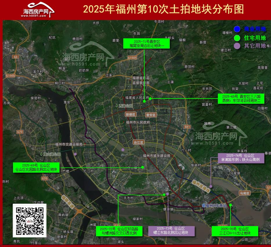 福州宗地2025-71号位于晋安区塔头路北侧,琯尾街周边出让地块一,土地用途及出让年限为住宅用地70年、商业用地40年。