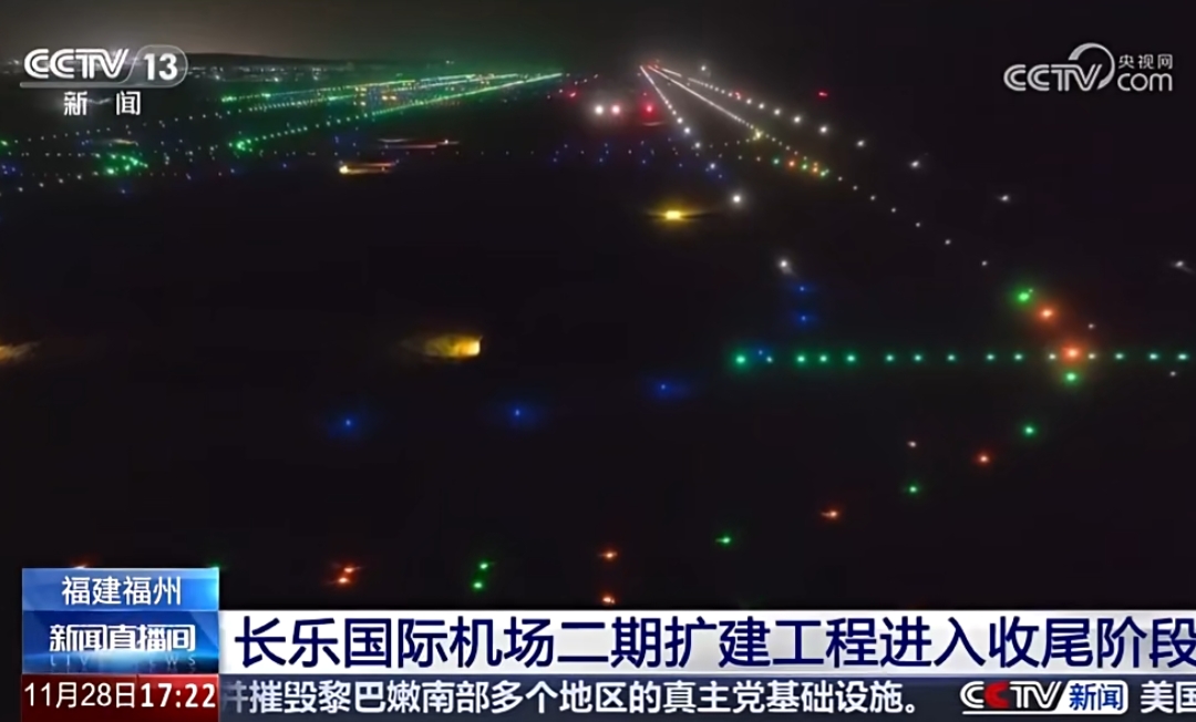 海西房产网(微信公众号:fjhxfcw)消息:据央视《新闻直播间》报道,11月28日,福建省重点项目福州长乐国际机场二期扩建工程主跑道上的12000多个助航灯依次点亮,长3600米、宽45米的新建主跑道全面完工。