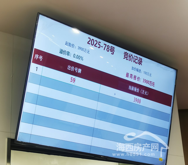经过1轮竞价,59号竞买人福州市战坂置业有限公司以底价3900万竞得福州宗地2025-78号,楼面地价2012.50元/㎡。