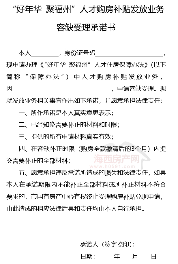 为更好落实“好年华 聚福州”人才购房补贴保障政策,经人才住房保障办公会议研究,建立“好年华 聚福州”人才购房补贴申请“容缺后补”机制。现将“容缺后补”相关内容公告如下: