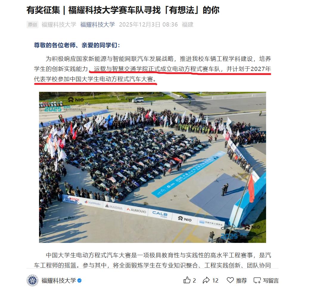 海西房产网(微信公众号:fjhxfcw)消息:2025年12月3日,福耀科技大学发布“车队队名和车队LOGO有奖征集”。