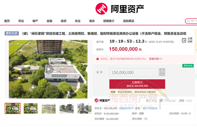 海西房产网(微信公众号:fjhxfcw)通过阿里司法拍卖网查询获悉,包括本次拍卖,该标的已累计举行六次拍卖,起拍价从2025年8月8日第一次拍卖的306665900元,一路下调,到本次拍卖只剩下150000000元,等于折价51.08%。