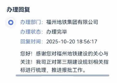 就在10月20日,福州地铁集团对外透露,正在对第三期建设规划相关指标进行梳理,推进报批工作。