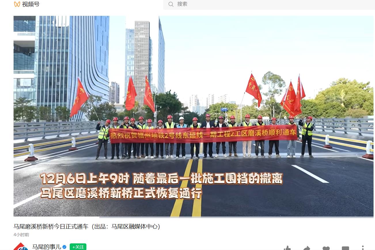 海西房产网(微信公众号:fjhxfcw)消息:据“马尾区融媒体中心”报道,12月6日上午9时许,随着最后一批施工围挡的撤离,马尾区磨溪桥新桥正式恢复通行。
