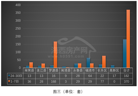 “连江”和“闽清”位列五、六两位,上周分别签约28套和3套。环比前一周分别增加15套和减少6套。