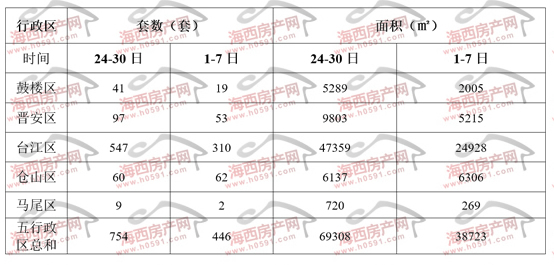 “鼓楼区”和“马尾区”位列四、五两位,上周分别签约19套和2套。