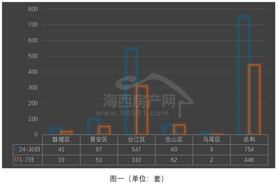 “仓山区”和“晋安区”位列二、三两位,上周分别签约62套和53套,环比前一周分别增加2套和减少44套。