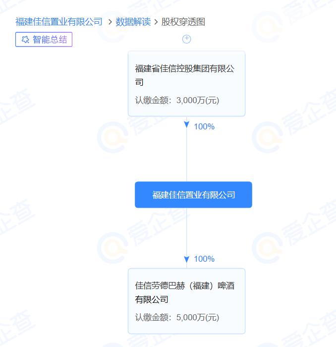 福建佳信置业有限公司的母公司为福建省佳信控股集团有限公司。福建佳信置业子公司为佳信劳德巴赫(福建)啤酒有限公司。