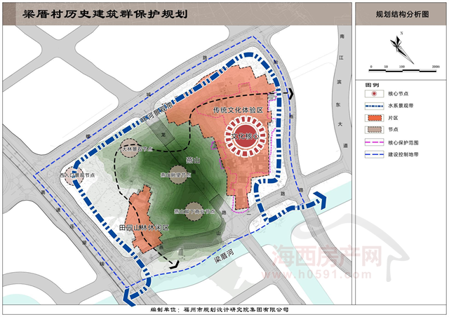 规划显示,梁厝村历史建筑群位于福州新区三江口片区,海峡文化艺术中心西侧。保护范围东至贻燕路,西至高速连接线,北至螺城路,南至梁厝河北岸。