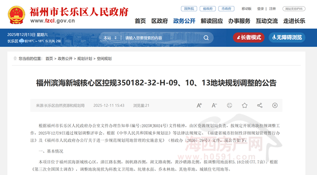 海西房产网(微信公众号:fjhxfcw)消息:12月11日,长乐区自然资源和规划局发布“福州滨海新城核心区控规350182-32-H-09、10、13地块规划调整的公告”。
