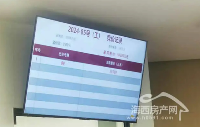 2024年11月15日,福州举行第七次土拍活动。其中,89号竞买人福州市园开安筑建设有限公司以3.03亿竞得福州宗地2024-85号,楼面地价2767.27元/㎡。