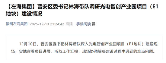 海西房产网(微信公众号:fjhxfcw)消息:据左海集团对外透露,12月10日,晋安区委书记林涛带队深入光电智创产业园项目(E1地块)建设现场,实地察看项目进展、听取工作汇报,现场协调解决建设过程中遇到的难点问题。