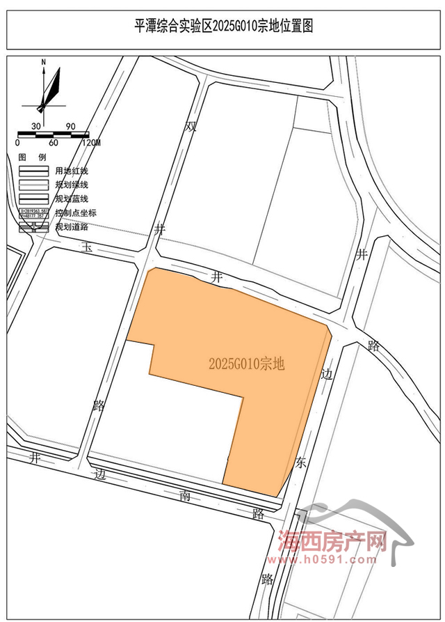 出让公告显示,平潭2025G010地块位于井路南侧井边东路西侧,土地用途为零售商业用地、防护绿地。