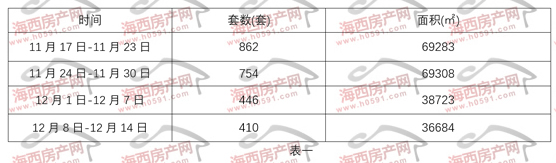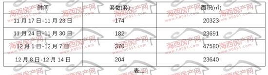 表一为2025年11月17日-12月14日福州五行政区住宅签约明细表。上周福州五区住宅签约410套,环比前一周减少36套。