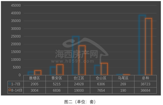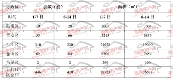 剩下的“鼓楼区”和“马尾区”分别签约3004㎡和190㎡,环比前一周一升一降。