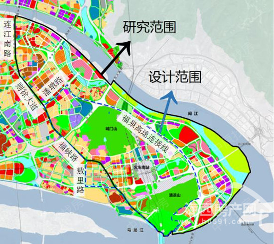 三江口片区北起闽江、南至乌龙江,西起连江南路、则徐大道、东至马江,总面积约48平方公里,正好位于闽江、乌龙江、马江汇流区域。