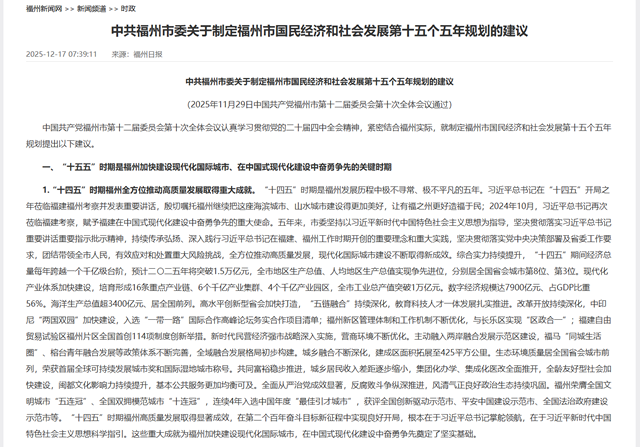 海西房产网(微信公众号:fjhxfcw)消息:中共福州市委发布“关于制定福州市国民经济和社会发展第十五个五年规划的建议”。