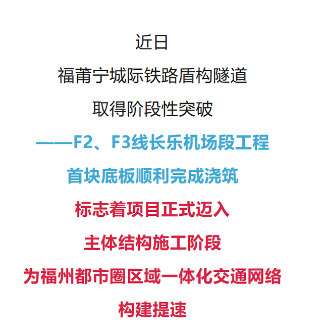 海西房产网(微信公众号:fjhxfcw)消息:据福州新区对外透露,近日福莆宁城际铁路盾构隧道取得阶段性突破——F2、F3线长乐机场段工程首块底板顺利完成浇筑。