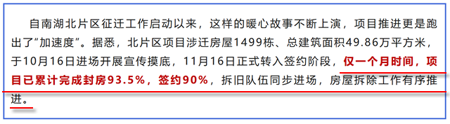 仅一个月时间,项目已累计完成封房93.5%,签约90%,拆旧队伍同步进场,房屋拆除工作有序推进。