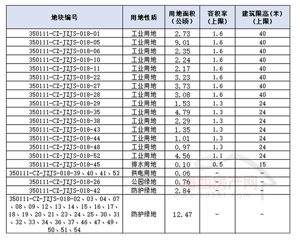 晋安区寿山乡350111-CZ-JZJS-018红庙单元涉及20幅地块,总面积61.27公顷(919.05亩),其中包含15幅工业用地、1幅排水用地、1幅供电用地、1幅公园绿地、2幅防护绿地。