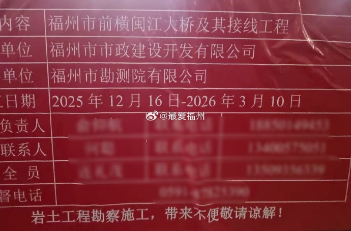 早在2025年9月,中建海峡就对外透露,该公司该公司承建前横路快速化改造工程、前横闽江大桥及其接线工程、福州市二环路白湖亭立交工程、福州市晋安区纵三南路道路工程等项目。